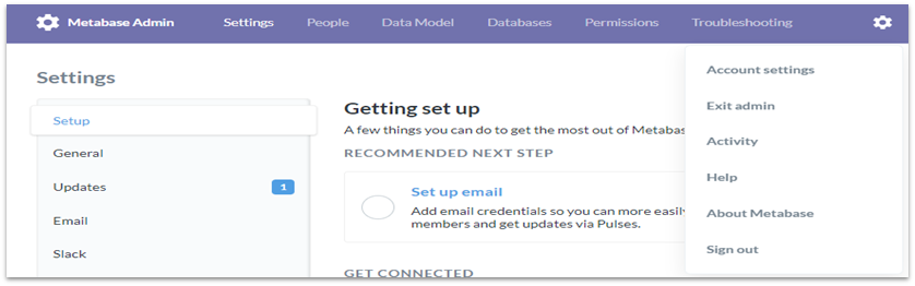 Metabase는 웹 서버를 내장하고 있어 웹 브라우저를 이용해 접속할 수 있으며, 전체 기능은 웹 브라우저를 통해 사용
